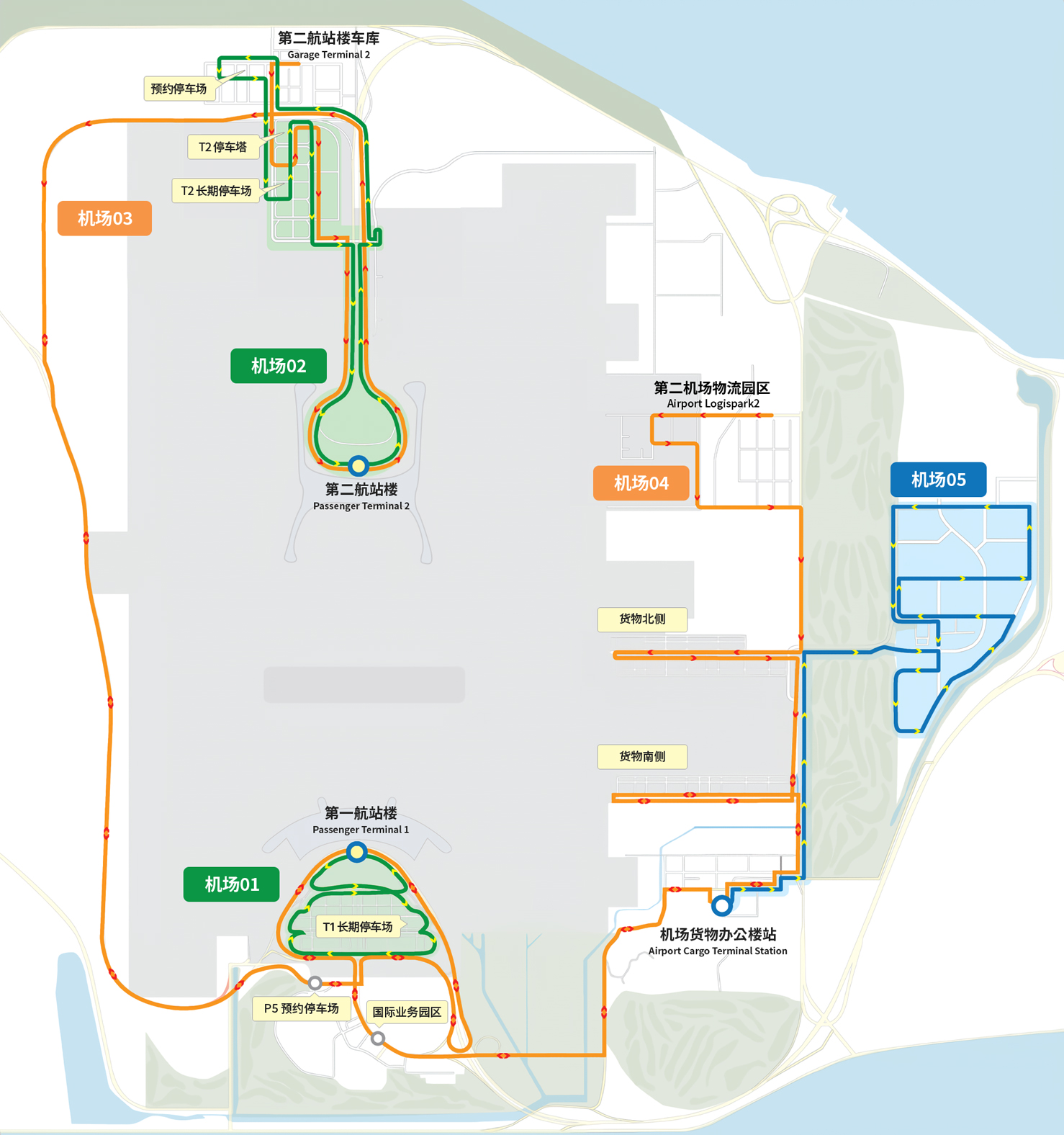 | 机场 05 | 货物办公楼站 ↔ 物流园区 | 10~22分钟 | 05:40~23:00 | 往返40分钟 |