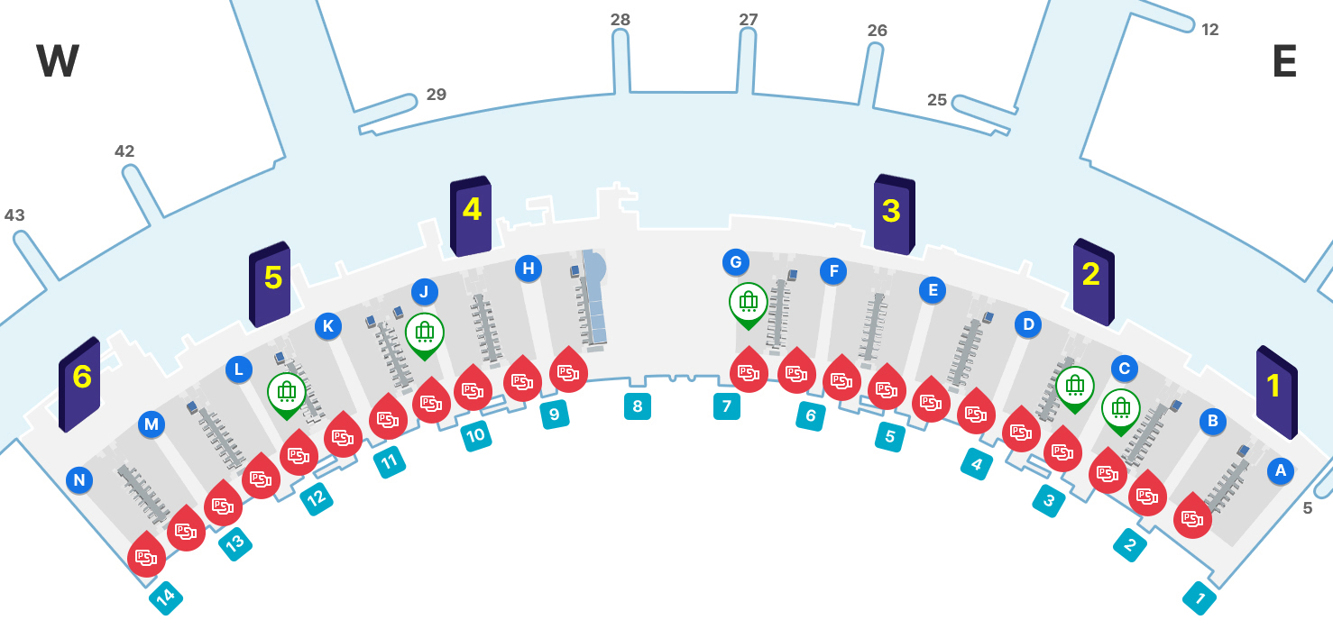 | Available Hours | G, H Counter 04:40–19:30 (up to 1 hour before flight departure). |