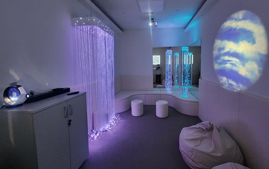 T2 Sensory RoomA calming space designed for passengers who experience anxiety while traveling through the airport. Equipped with Snoezelen features such as wheel projectors and bubble tubes, the room allows users to create a soothing atmosphere tailored to their preferences.