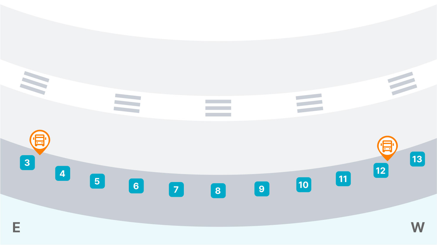 - Board at the pick-up spots in front of Gates 3 and 12 on the 3rd floor of Terminal 1