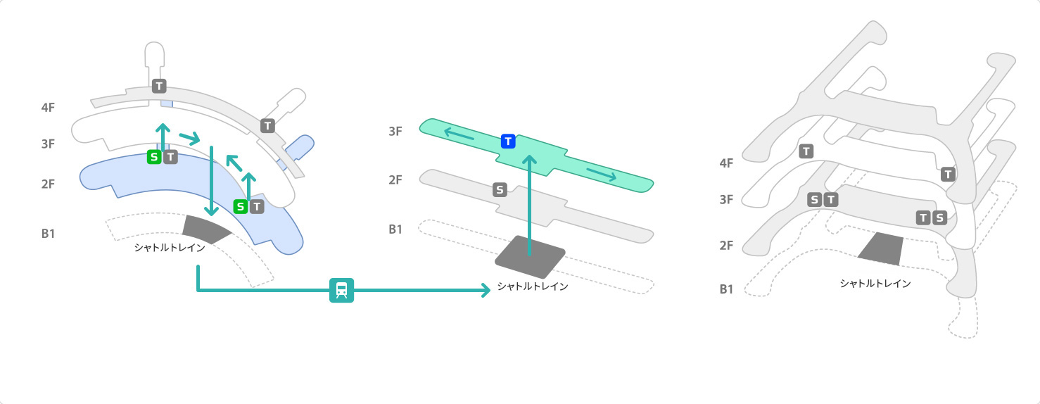 STEP 02シャトルトレインに乗って搭乗棟へ移動