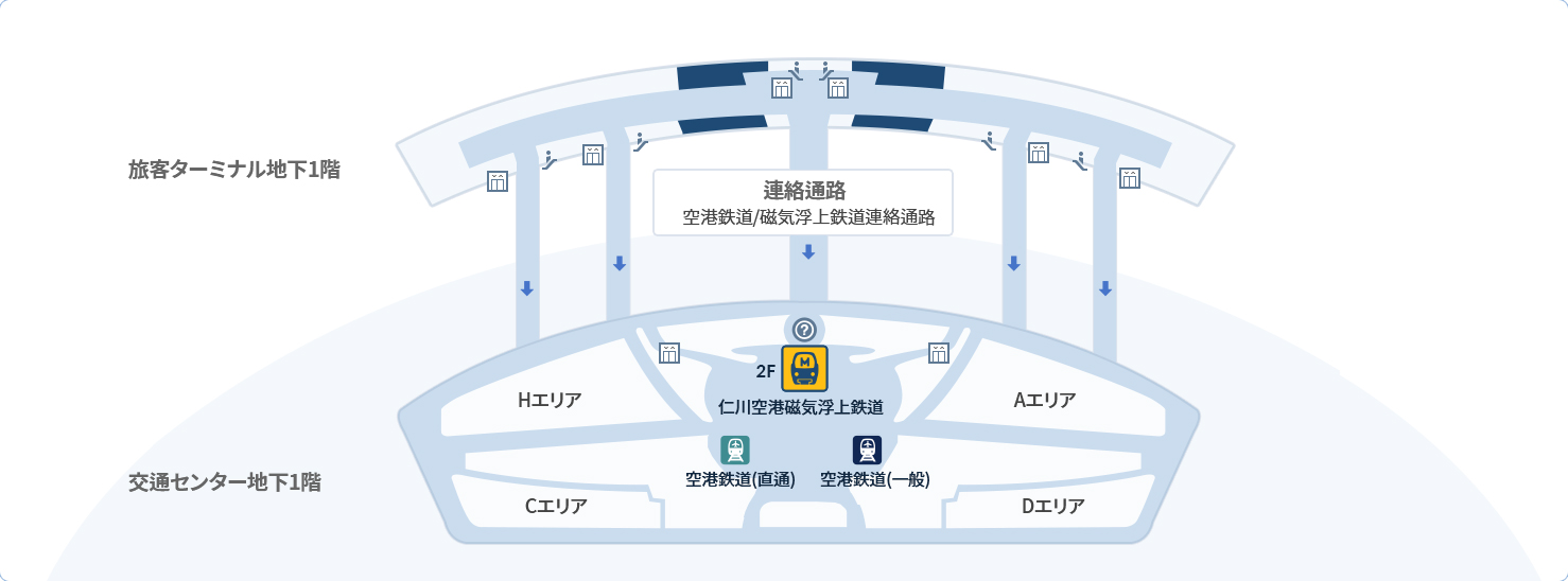 - 出発駅(仁川国際空港1ターミナル駅)位置 : 仁川空港第1旅客ターミナル交通センター2階