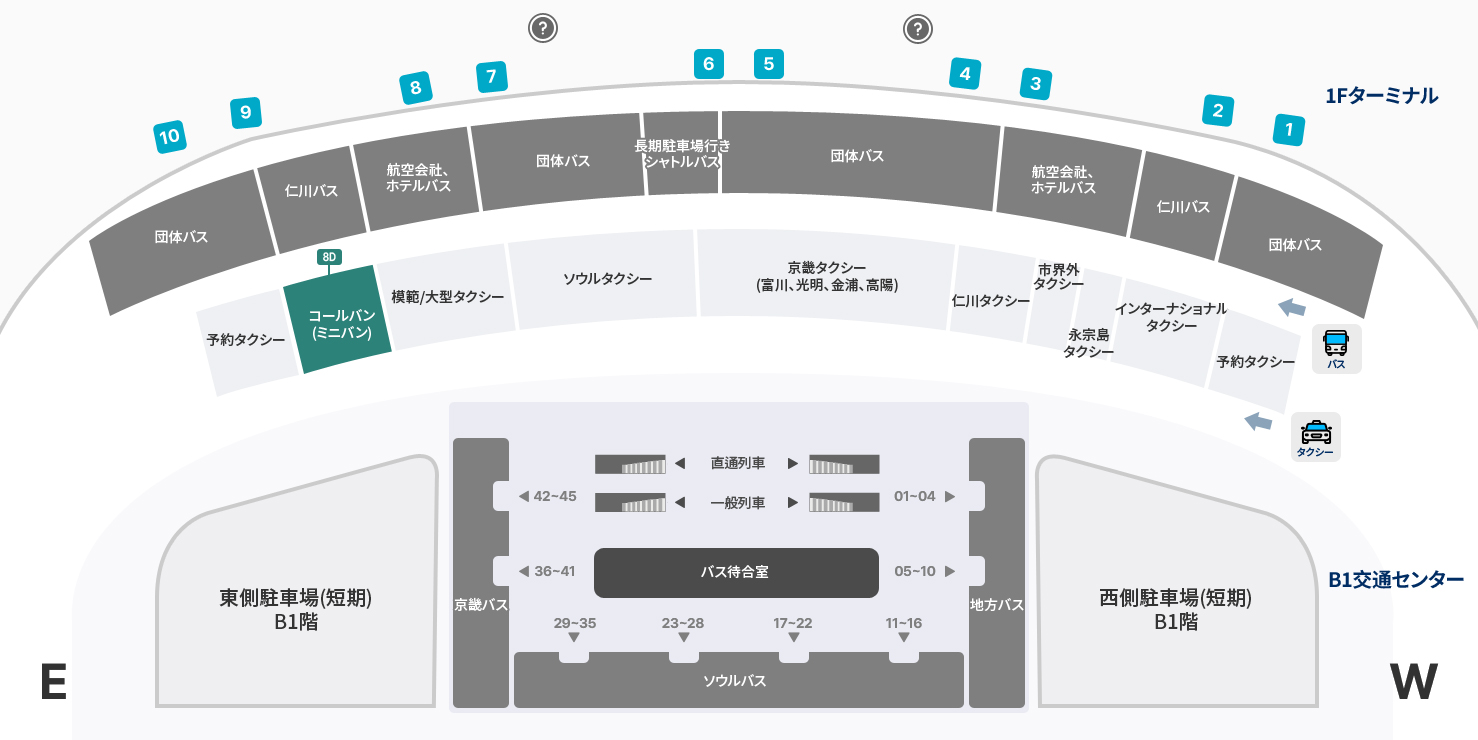 | 乗り場 | 第1旅客ターミナル1階10C | 第2旅客ターミナル1階8D |