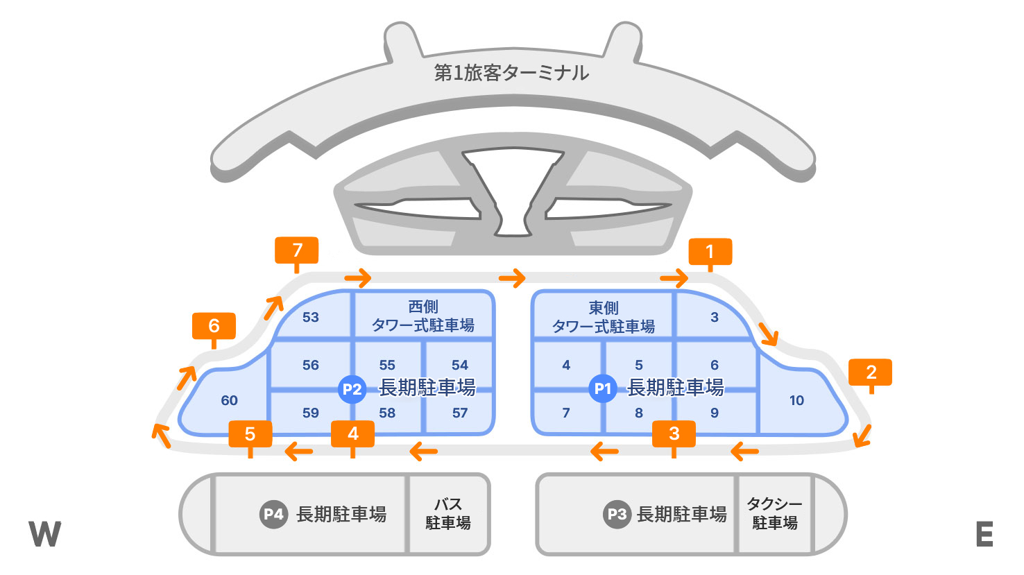 P5予約制駐車場をご利用の方は、空港03番、空港04番をご利用ください。