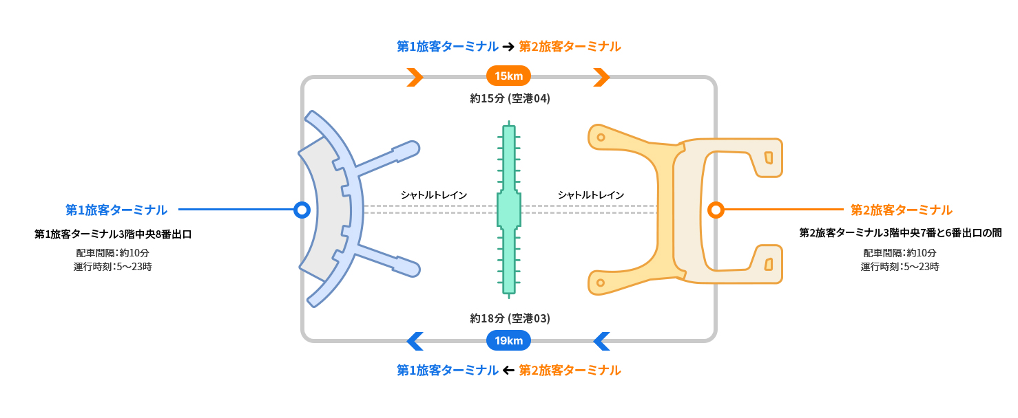空港鉄道でターミナル間を移動する場合は、有料で利用可能です