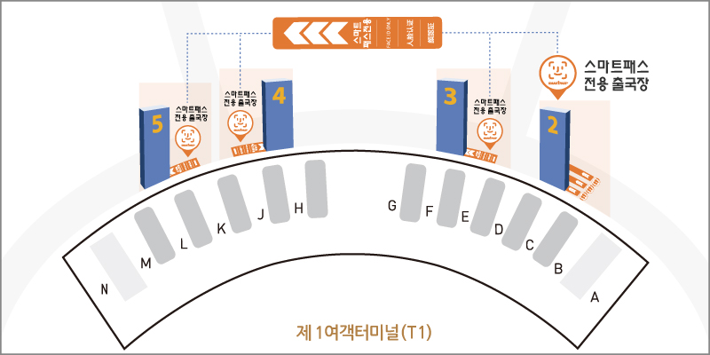 - T1 스마트패스 서비스 사용가능 출국장 위치안내