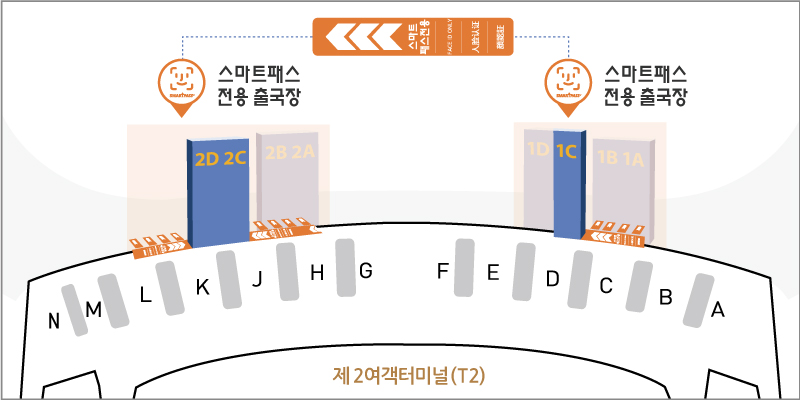 - T2 스마트패스 서비스 사용가능 출국장 위치안내