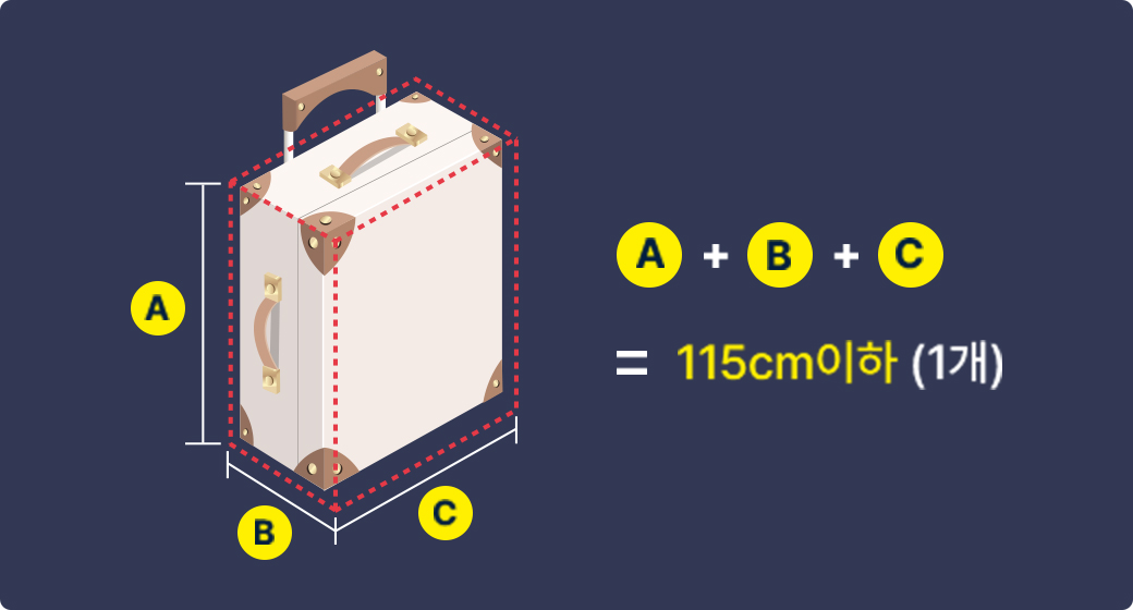 - 항공기 안전운항을 위하여 항공기 내로 반입할 수 있는 짐의 크기를 제한하고 있습니다.