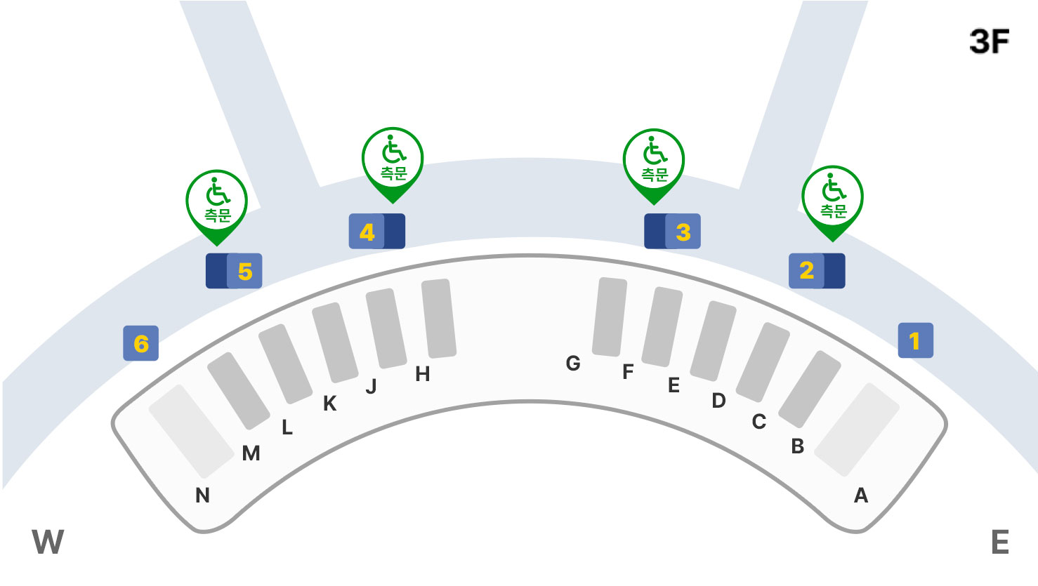 | 출국장 | 5 (측문) | 4 (측문) | 3 (측문) | 2 (측문) |