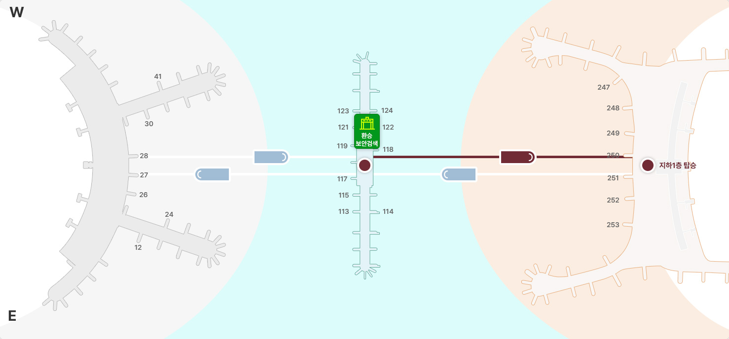 도착게이트“보안검색장”으로 걷기