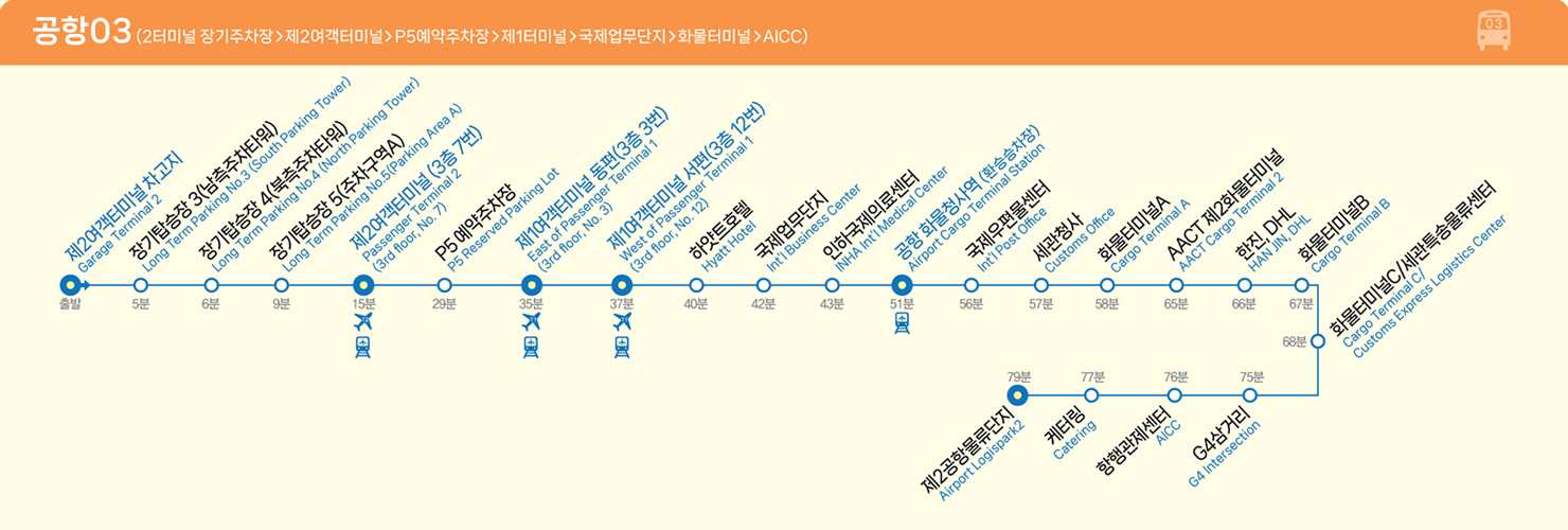 - 제1 여객터미널 3층 3번, 12번 게이트 앞 승차장에서 탑승
