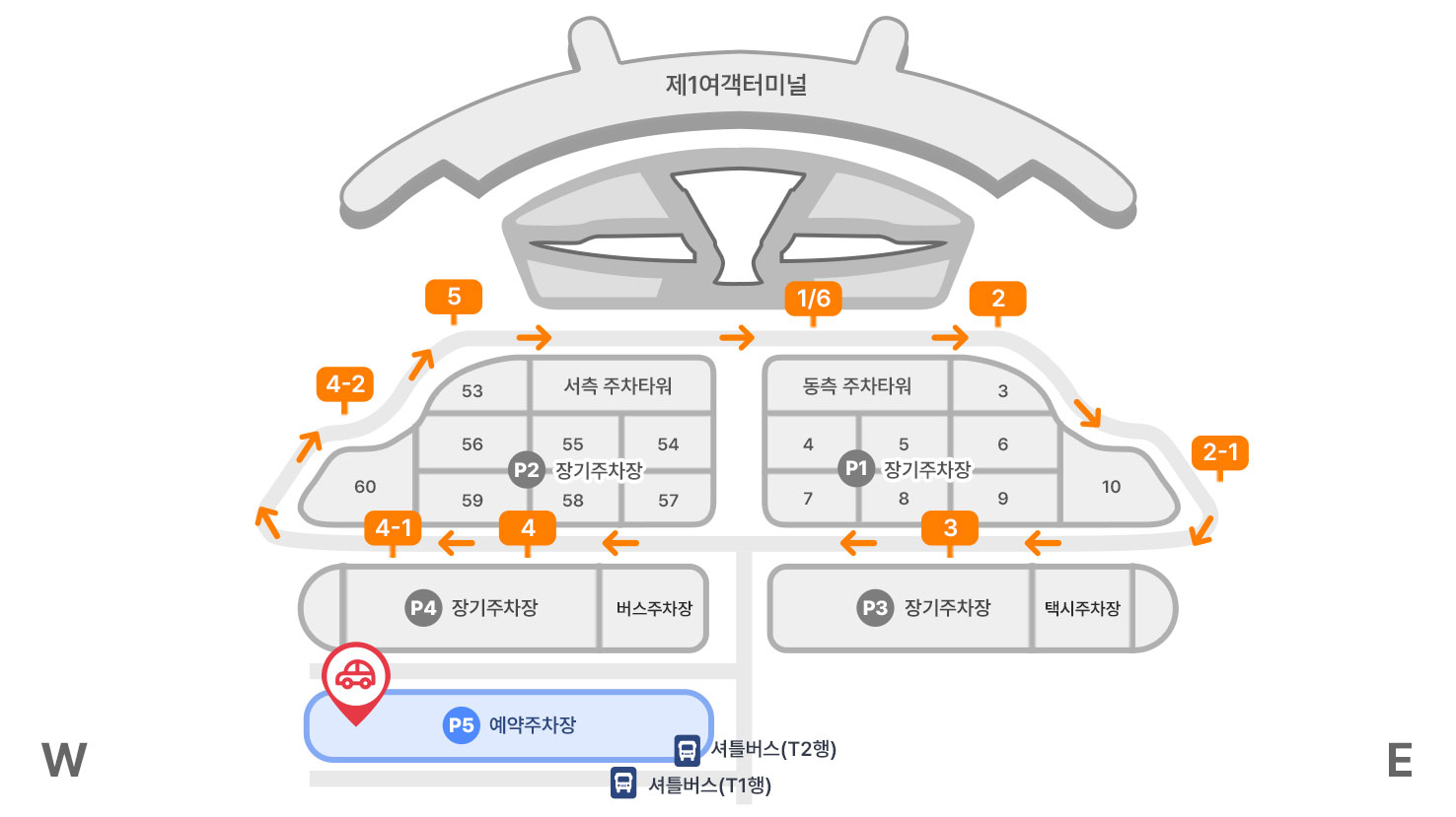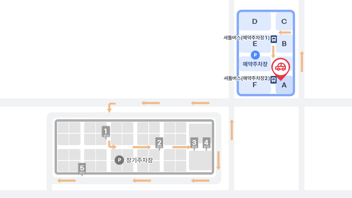| 위치 | 제1 여객터미널 예약주차장 126번 구역 | 제2여객터미널 예약주차장 A5-2구역 | ||