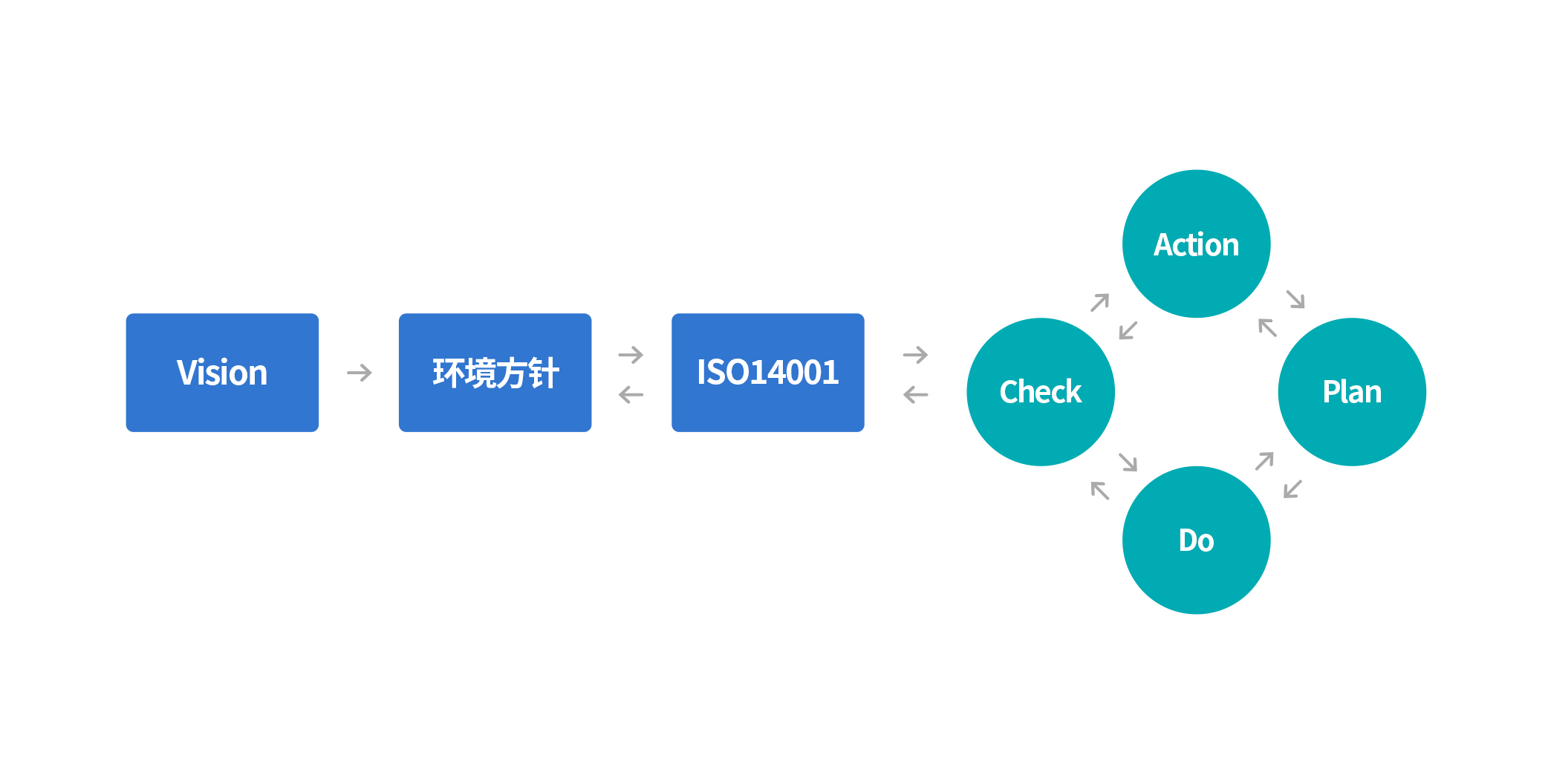 - 该管理体系是指项目经营主体对自身所有活动的环境影响进行评估,设立具体的环境目标,持续执行所制定的实施计划(PLAN)→ 执行(DO)→ 检查实施状况(CHECK)→ 采取更正措施(ACTION)的PDCA循环,从而积极改善环境。