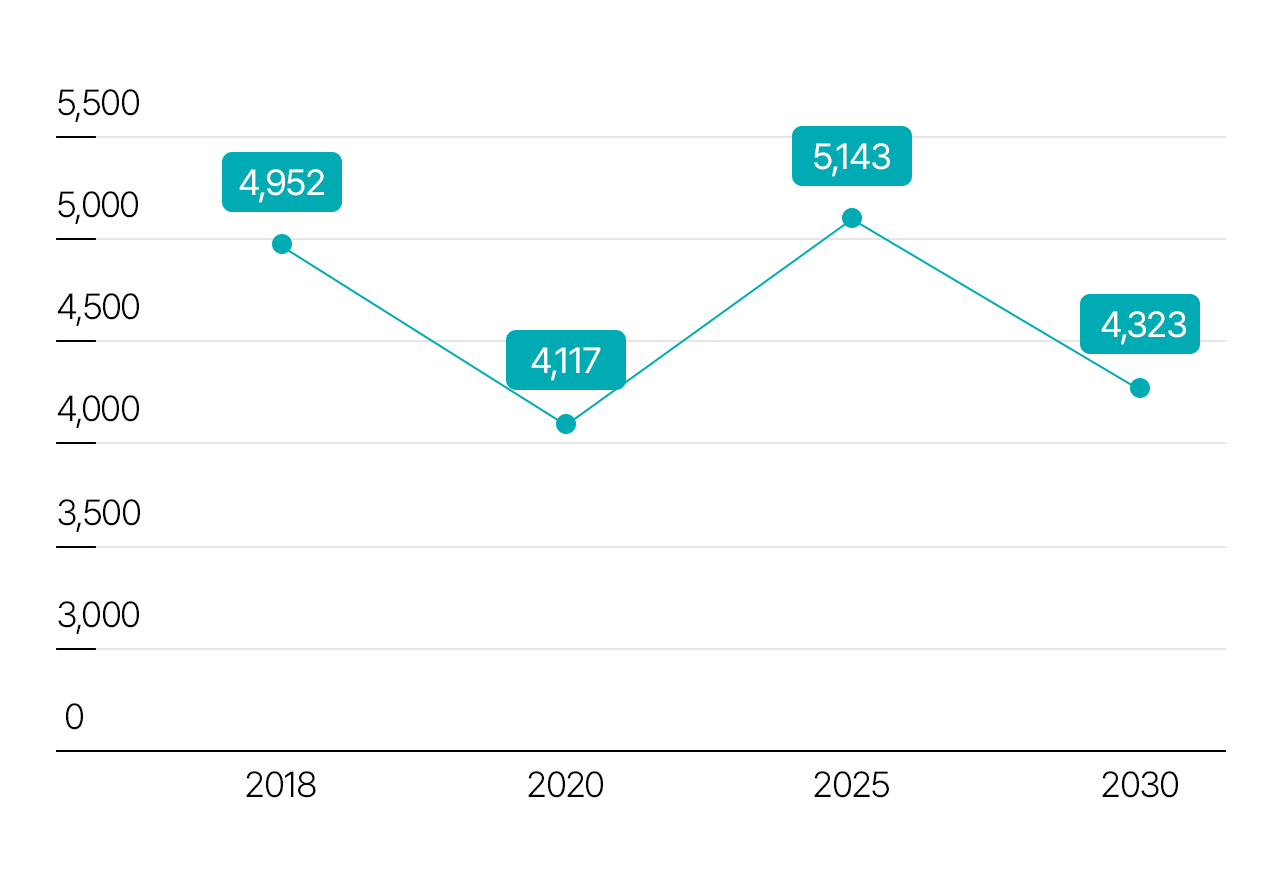 | 2030 | 4,323 | -629 |